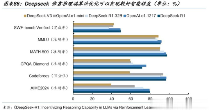 特别是当时在国产算力受限的现实条件下,R1凭借算法与工程上的创新,特定环境下在性能上追平国际一线水平。